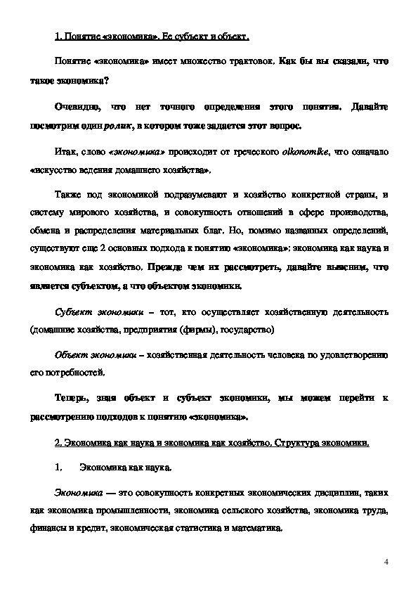 Экономика; Субъект экономики; Объект экономики; Экономика как наука;