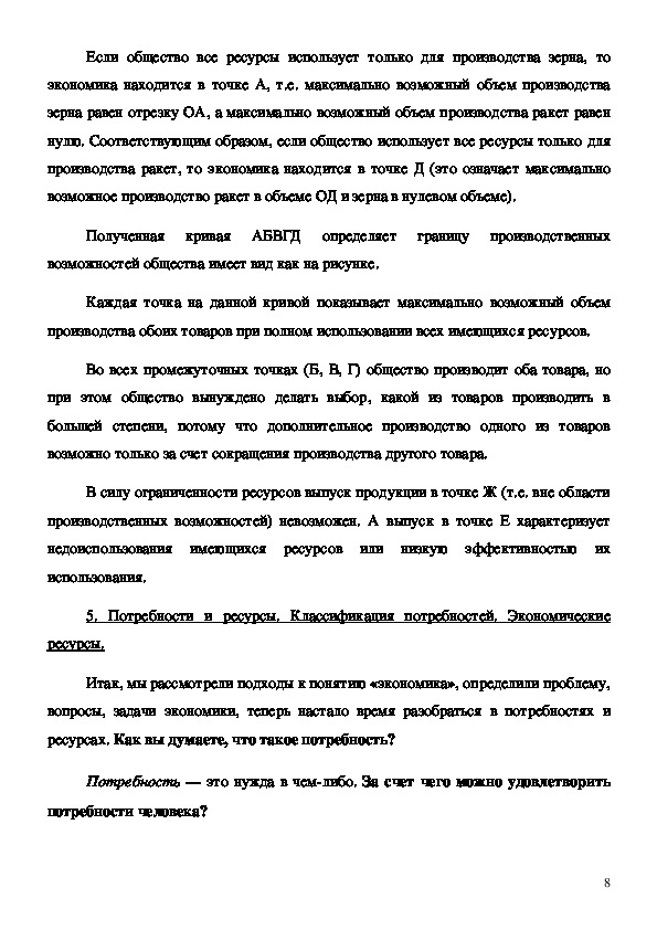 экономики, узнали, что такое кривая производственных возможностей, вспомнили,