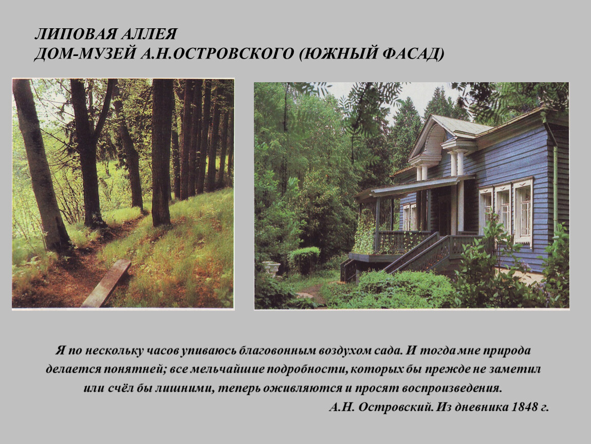 ЛИПОВАЯ АЛЛЕЯ ДОМ-МУЗЕЙ А.Н.ОСТРОВСКОГО (ЮЖНЫЙ ФАСАД)