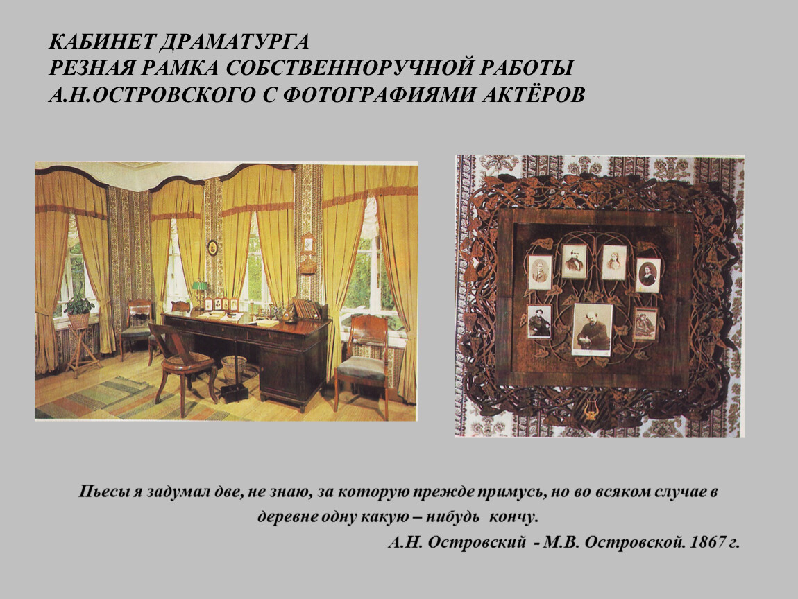 КАБИНЕТ ДРАМАТУРГАРЕЗНАЯ РАМКА СОБСТВЕННОРУЧНОЙ РАБОТЫ А.Н.ОСТРОВСКОГО С ФОТОГРАФИЯМИ АКТЁРОВ