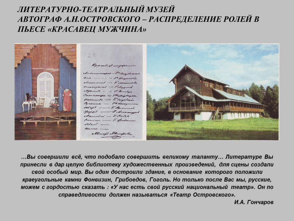 ЛИТЕРАТУРНО-ТЕАТРАЛЬНЫЙ МУЗЕЙАВТОГРАФ А.Н.ОСТРОВСКОГО – РАСПРЕДЕЛЕНИЕ РОЛЕЙ В ПЬЕСЕ «КРАСАВЕЦ МУЖЧИНА»