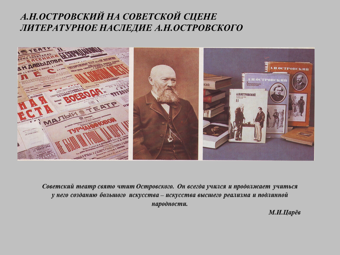 А.Н.ОСТРОВСКИЙ НА СОВЕТСКОЙ СЦЕНЕЛИТЕРАТУРНОЕ НАСЛЕДИЕ А.Н.ОСТРОВСКОГО