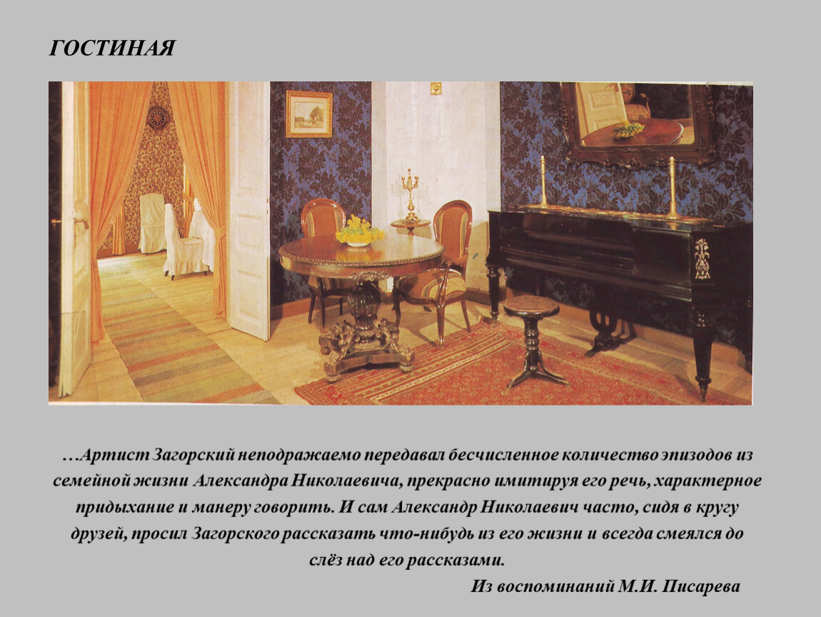 семейной жизни Александра Николаевича, прекрасно имитируя его речь, характерное