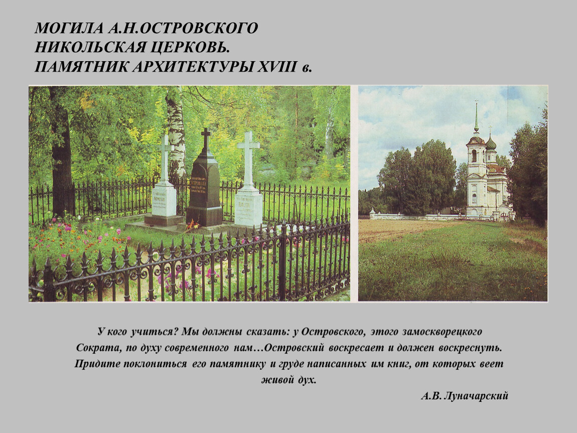 МОГИЛА А.Н.ОСТРОВСКОГОНИКОЛЬСКАЯ ЦЕРКОВЬ.ПАМЯТНИК АРХИТЕКТУРЫ XVIII в.