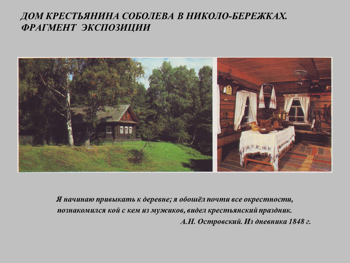ДОМ КРЕСТЬЯНИНА СОБОЛЕВА В НИКОЛО-БЕРЕЖКАХ. ФРАГМЕНТ ЭКСПОЗИЦИИ
