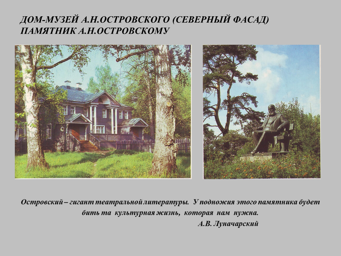 ДОМ-МУЗЕЙ А.Н.ОСТРОВСКОГО (СЕВЕРНЫЙ ФАСАД)ПАМЯТНИК А.Н.ОСТРОВСКОМУ