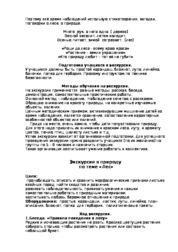 Экскурсия позволяет заглянуть в мастерскую природы, учит учащихся наблюдать и видеть много интересного. Дети знакомятся с растениями в естественной среде, выявляют приспособленность видов к совместному обитанию, изучают видовой состав растений, любуются красотой природы и приходят к выводу о необходимости охраны природы.