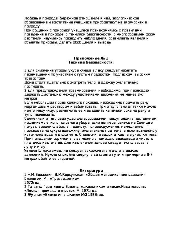 поведения в природе, с техникой безопасности, с многообразием форм