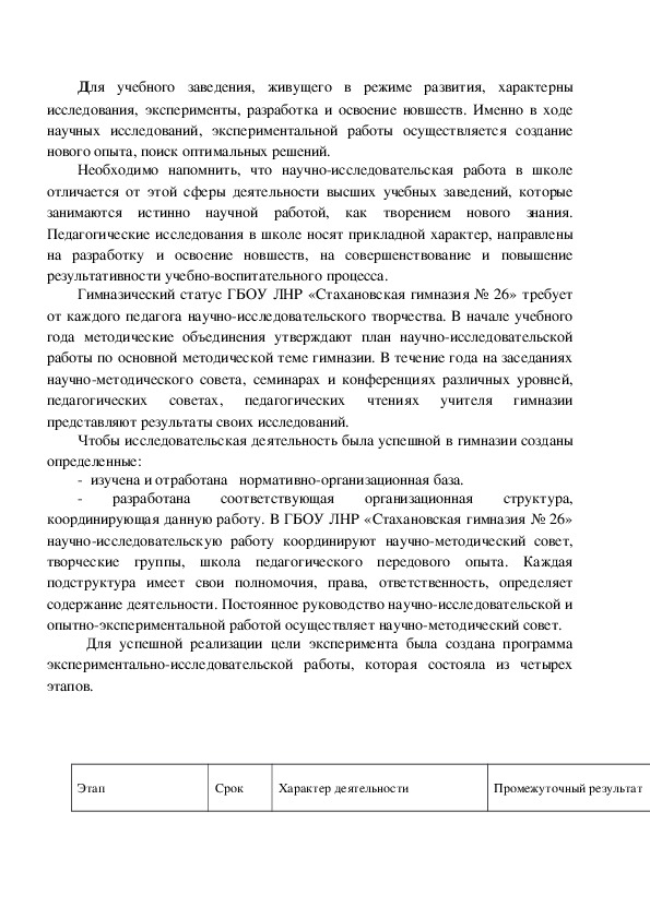 инновационного, тем ближе она к эксперименту. ГБОУ ЛНР «Стахановская