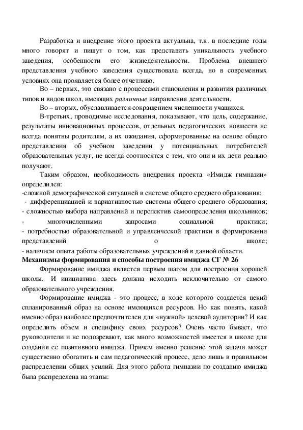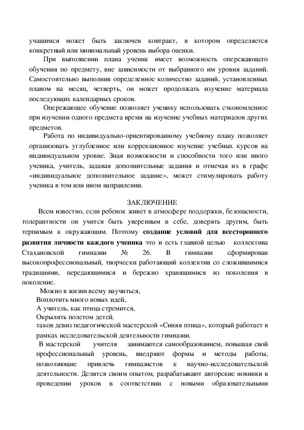 личности каждого ученика.Для учебного заведения, живущего в режиме развития, характерны