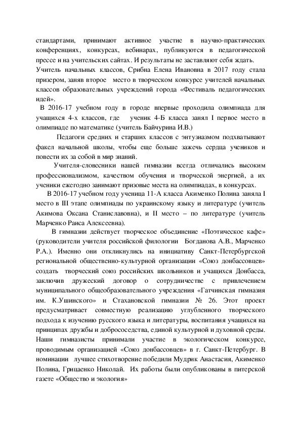 муниципального общеобразовательного учреждения «Гатчинская гимназия
