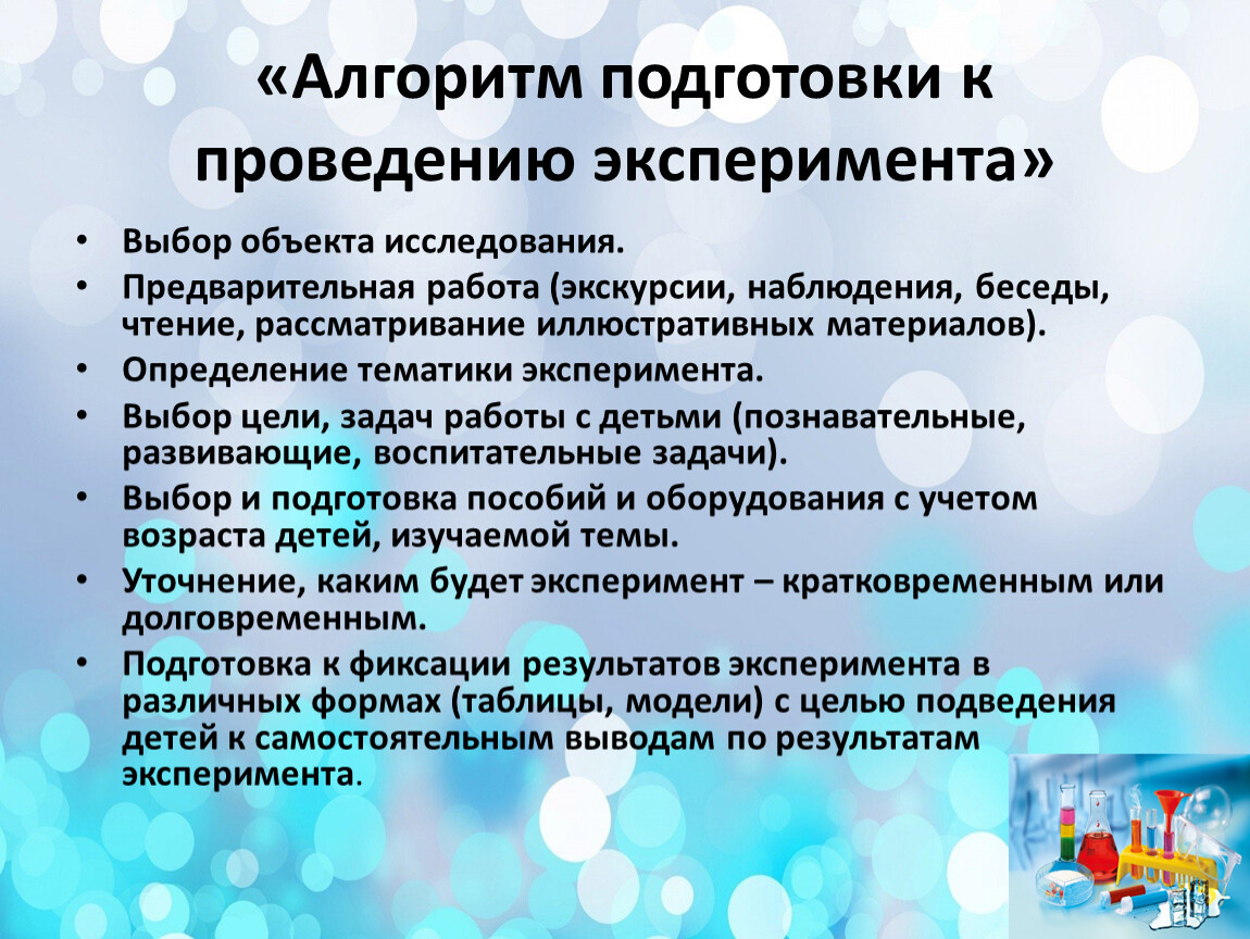 «Алгоритм подготовки к проведению эксперимента»