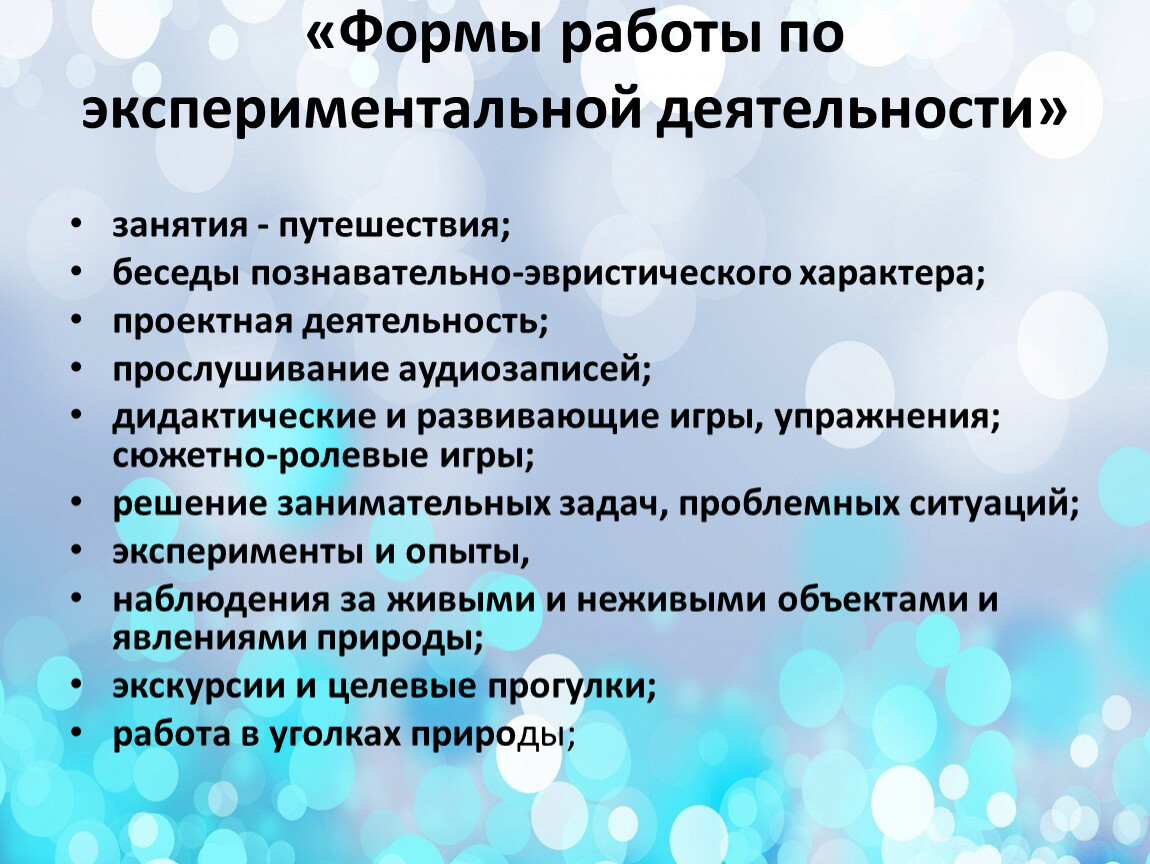 «Формы работы по экспериментальной деятельности»
