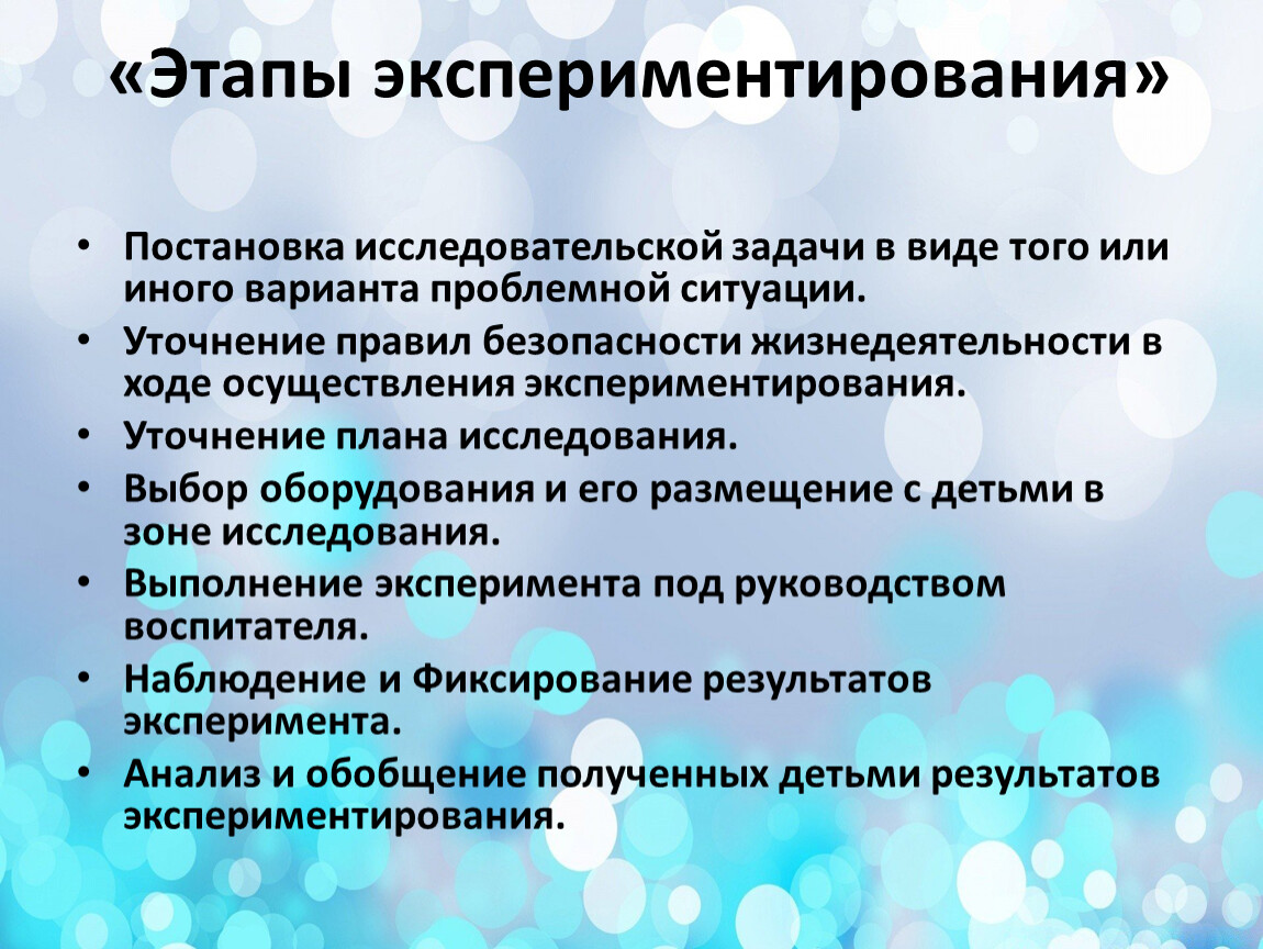 «Этапы экспериментирования»