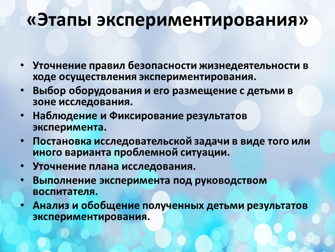 Уточнение правил безопасности жизнедеятельности в ходе осуществления экспериментирования.