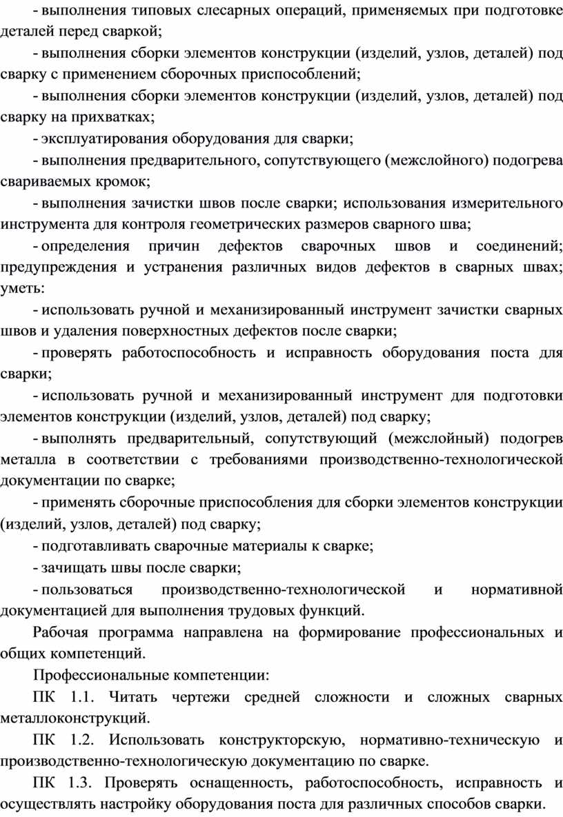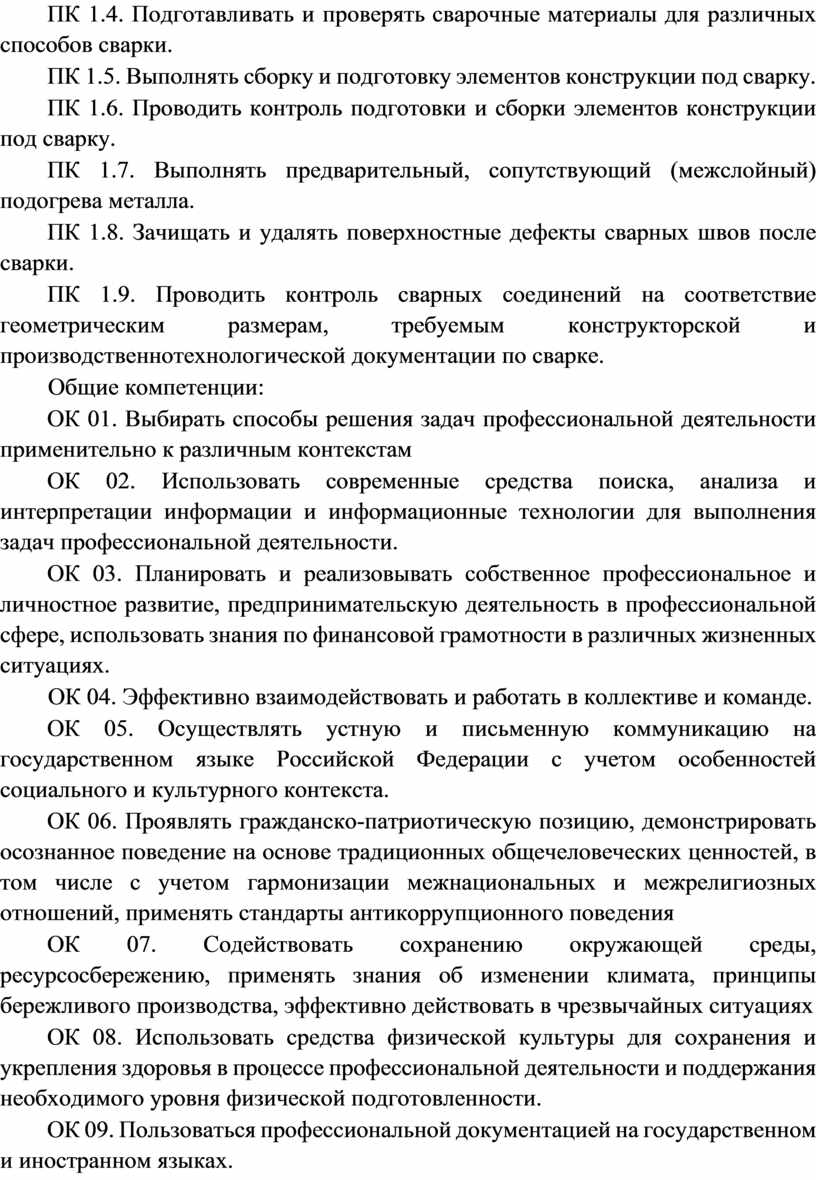 ПК 1.4. Подготавливать и проверять сварочные материалы для различных способов сварки.
