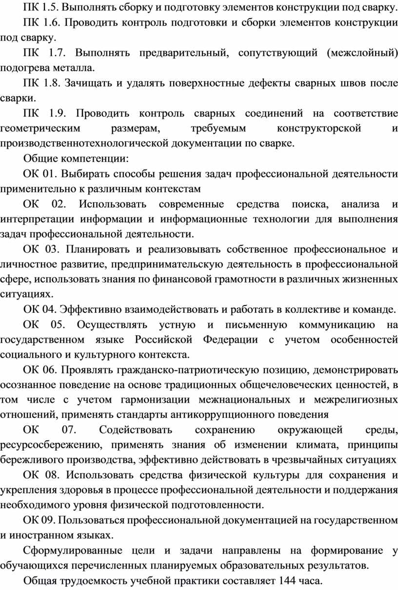 ПК 1.5. Выполнять сборку и подготовку элементов конструкции под сварку.