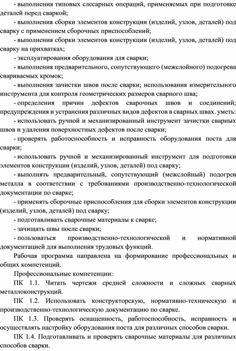 ПК 1.4. Подготавливать и проверять сварочные материалы для различных способов сварки.