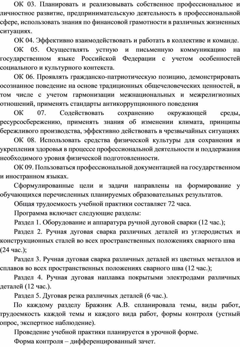 Рабочая программа учебной практики по профессии 15.01.05 Сварщик (ручной и частично механизированной сварки (наплавки)), профессиональный модуль 02 «Ручная дуговая сварка (наплавка, резка) плавящимся покрытым электродом» соответствует требованиям ФГОС СПО по профессии 15.01.05 СВАРЩИК (ручной и частично механизированной сварки (наплавки), входящей в укрупненную группу профессий 15.00.00 Машиностроение.