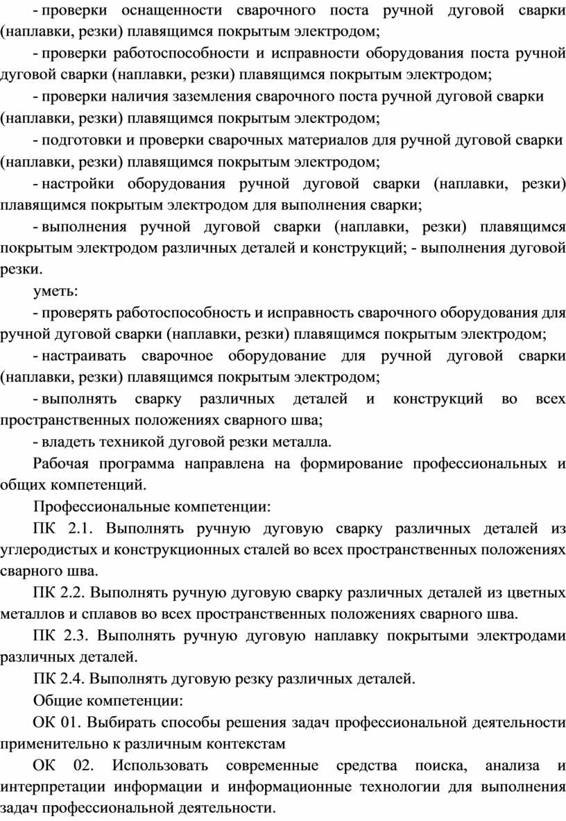 ПК 2.1. Выполнять ручную дуговую сварку различных деталей из углеродистых и конструкционных сталей во всех пространственных положениях сварного шва.