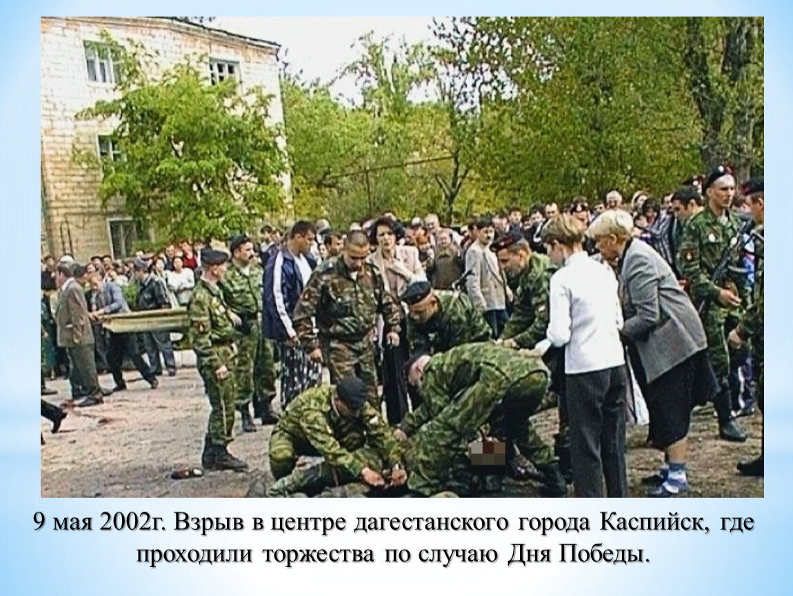 9 мая 2002г. Взрыв в центре дагестанского города Каспийск, где проходили торжества по случаю Дня Победы.
