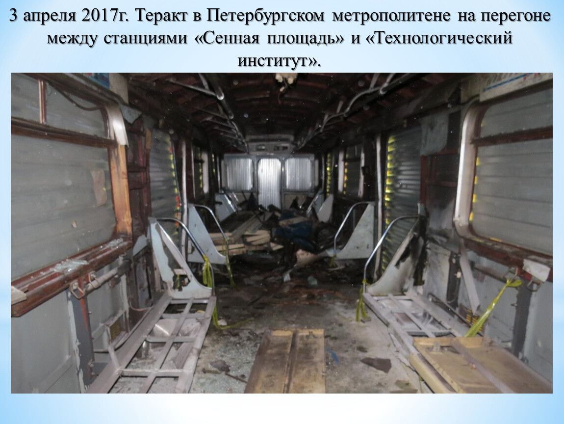 3 апреля 2017г. Теракт в Петербургском метрополитене на перегоне между станциями «Сенная площадь» и «Технологический институт».