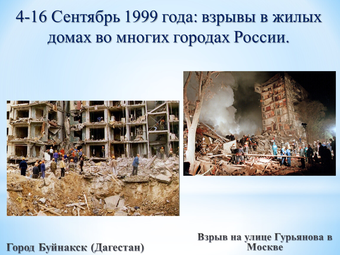 4-16 Сентябрь 1999 года: взрывы в жилых домах во многих городах России.