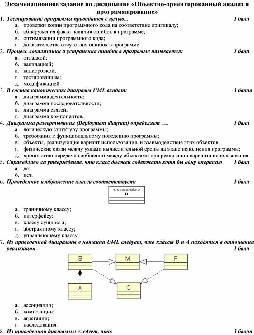 Экзаменационное задание по дисциплине «Объектно-ориентированный анализ и программирование»