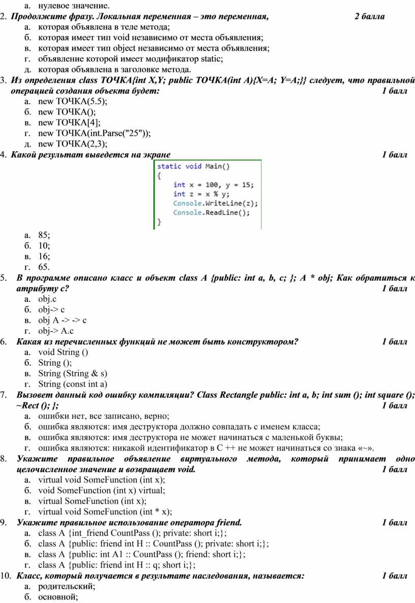 15. Продолжите фразу. Локальная переменная – это переменная, 2 балла