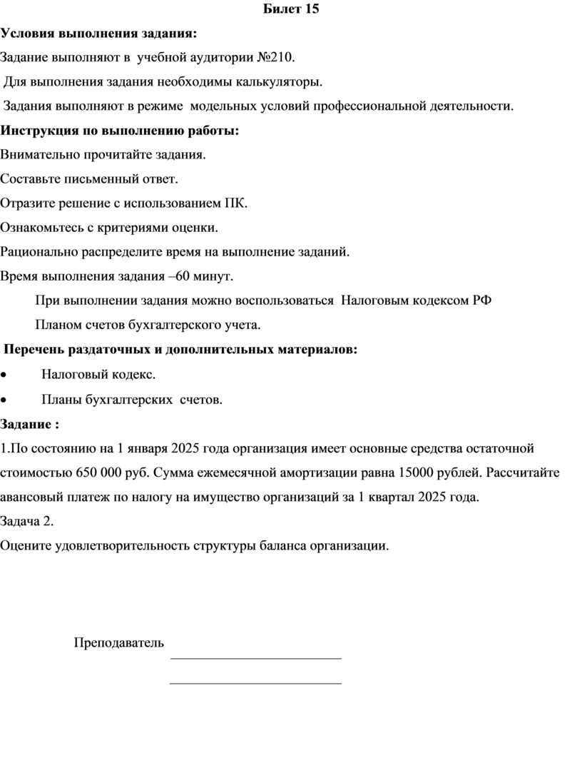 1.По состоянию на 1 января 2025 года организация имеет основные средства остаточной стоимостью 650 000 руб. Сумма ежемесячной амортизации равна 15000 рублей. Рассчитайте авансовый платеж по налогу на имущество организаций за 1 квартал 2025 года.