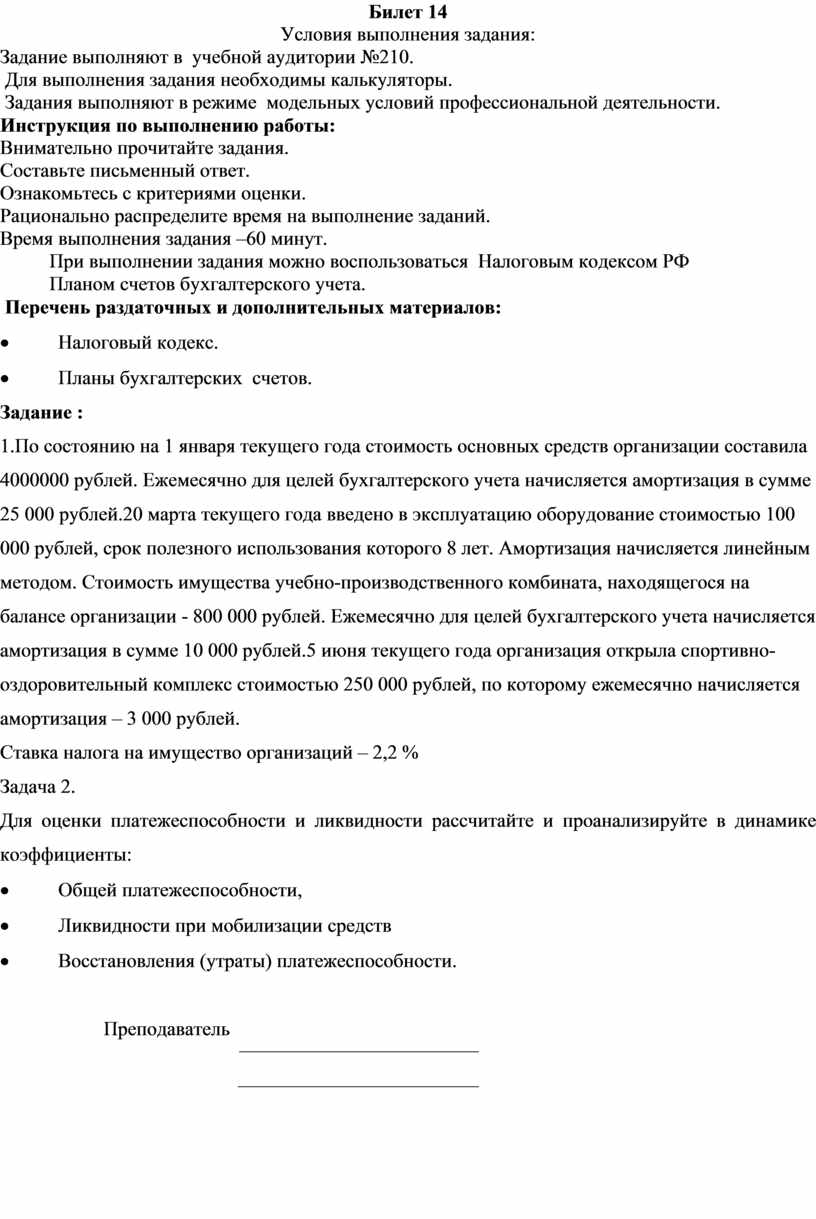 1.По состоянию на 1 января текущего года стоимость основных средств организации составила 4000000 рублей. Ежемесячно для целей бухгалтерского учета начисляется амортизация в сумме 25 000 рублей.20 марта текущего года введено в эксплуатацию оборудование стоимостью 100 000 рублей, срок полезного использования которого 8 лет. Амортизация начисляется линейным методом. Стоимость имущества учебно-производственного комбината, находящегося на балансе организации - 800 000 рублей. Ежемесячно для целей бухгалтерского учета начисляется амортизация в сумме 10 000 рублей.5 июня текущего года организация открыла спортивно-оздоровительный комплекс стоимостью 250 000 рублей, по которому ежемесячно начисляется амортизация – 3 000 рублей.