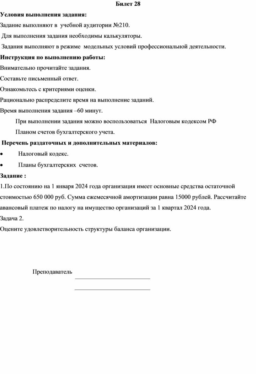 1.По состоянию на 1 января 2024 года организация имеет основные средства остаточной стоимостью 650 000 руб. Сумма ежемесячной амортизации равна 15000 рублей. Рассчитайте авансовый платеж по налогу на имущество организаций за 1 квартал 2024 года.