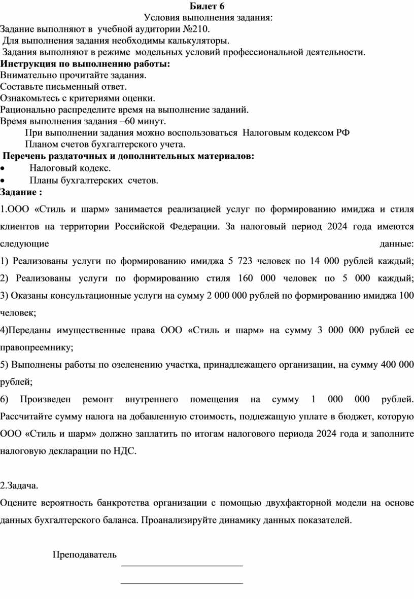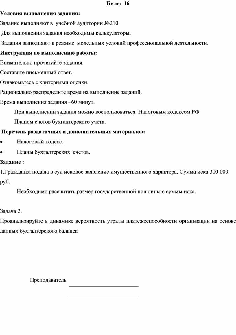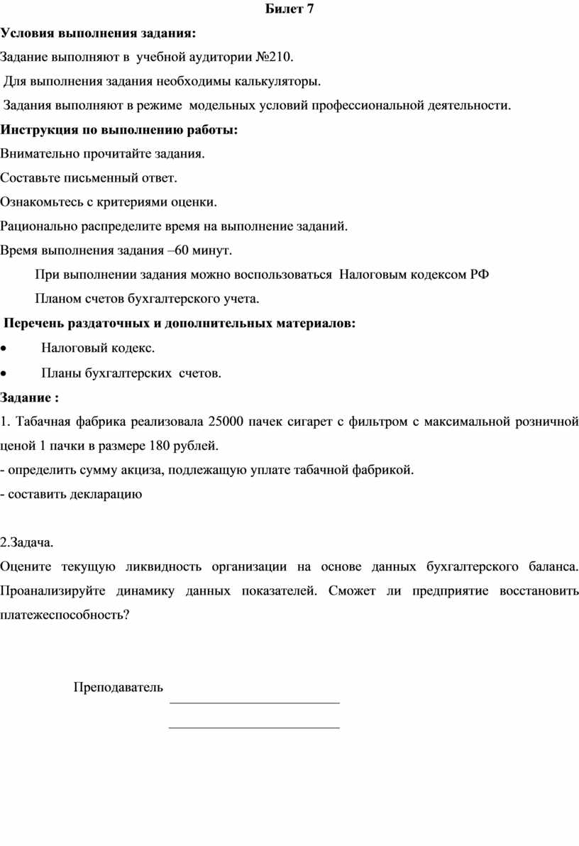 Задание выполняют в учебной аудитории №210.