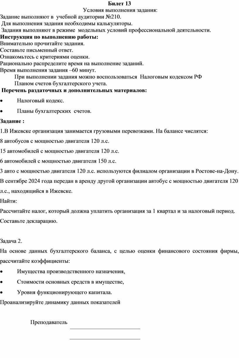 Ижевске организация занимается грузовыми перевозками. На балансе числятся: