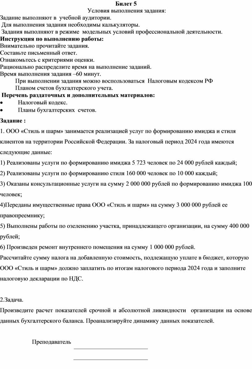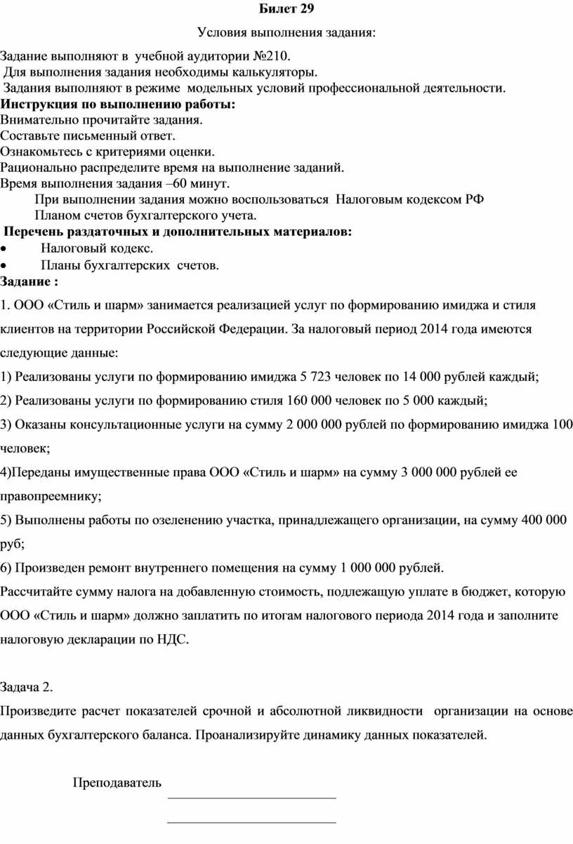 При выполнении задания можно воспользоваться Налоговым кодексом РФ