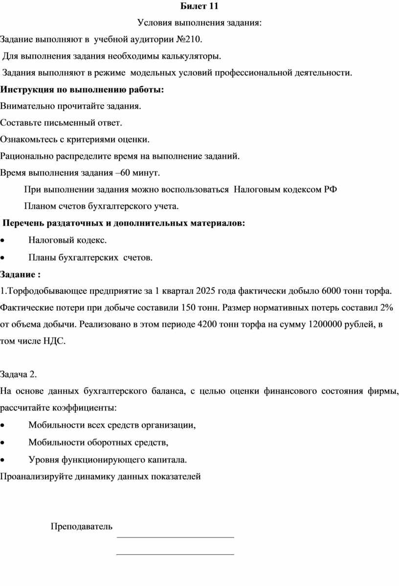 1.Торфодобывающее предприятие за 1 квартал 2025 года фактически добыло 6000 тонн торфа. Фактические потери при добыче составили 150 тонн. Размер нормативных потерь составил 2% от объема добычи. Реализовано в этом периоде 4200 тонн торфа на сумму 1200000 рублей, в том числе НДС.