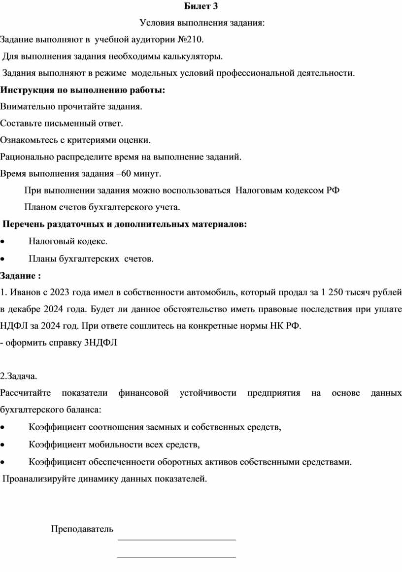 1. Иванов с 2023 года имел в собственности автомобиль, который продал за 1 250 тысяч рублей в декабре 2024 года. Будет ли данное обстоятельство иметь правовые последствия при уплате НДФЛ за 2024 год. При ответе сошлитесь на конкретные нормы НК РФ.