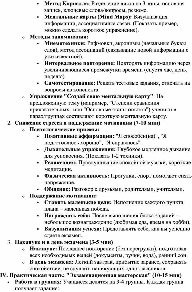 Тема: Эффективная подготовка к экзаменам: стратегии, техники и психологические аспекты.