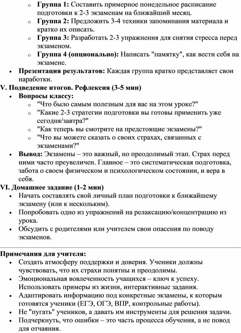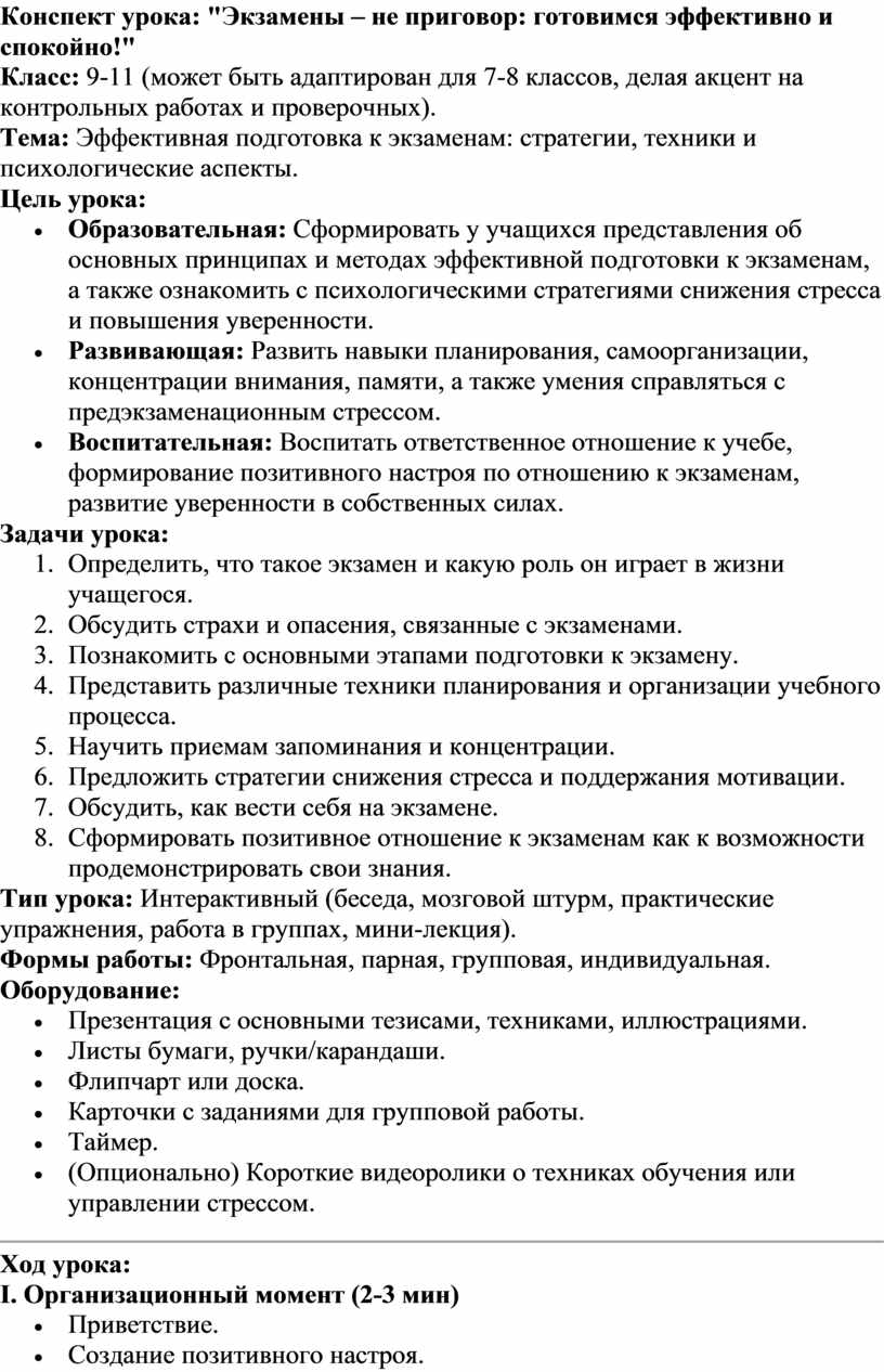 Конспект урока: "Экзамены – не приговор: готовимся эффективно и спокойно!"