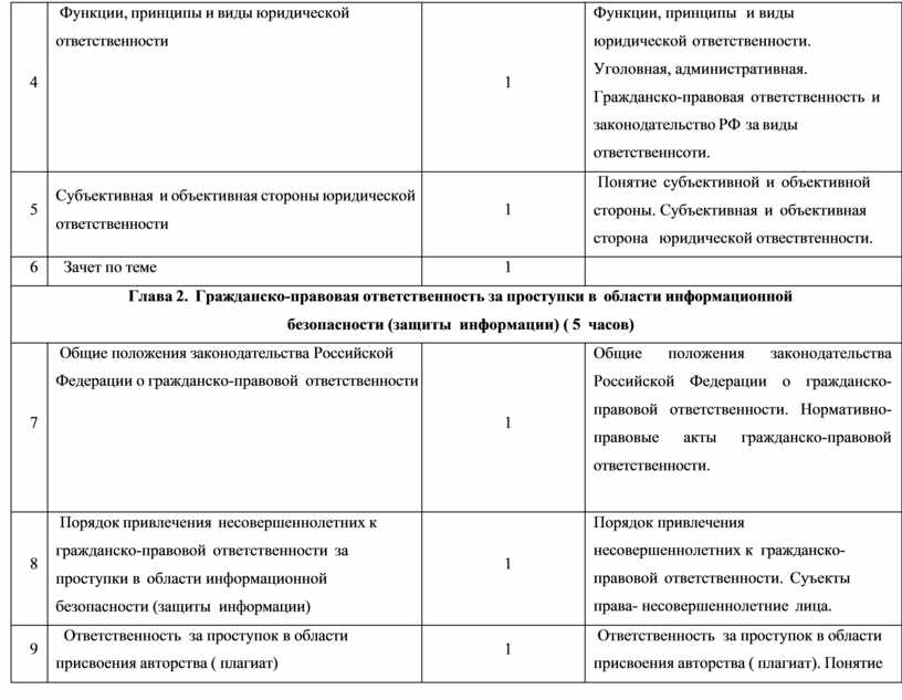 Глава 2. Гражданско-правовая ответственность за проступки в области информационной безопасности (защиты информации) ( 5 часов) |
