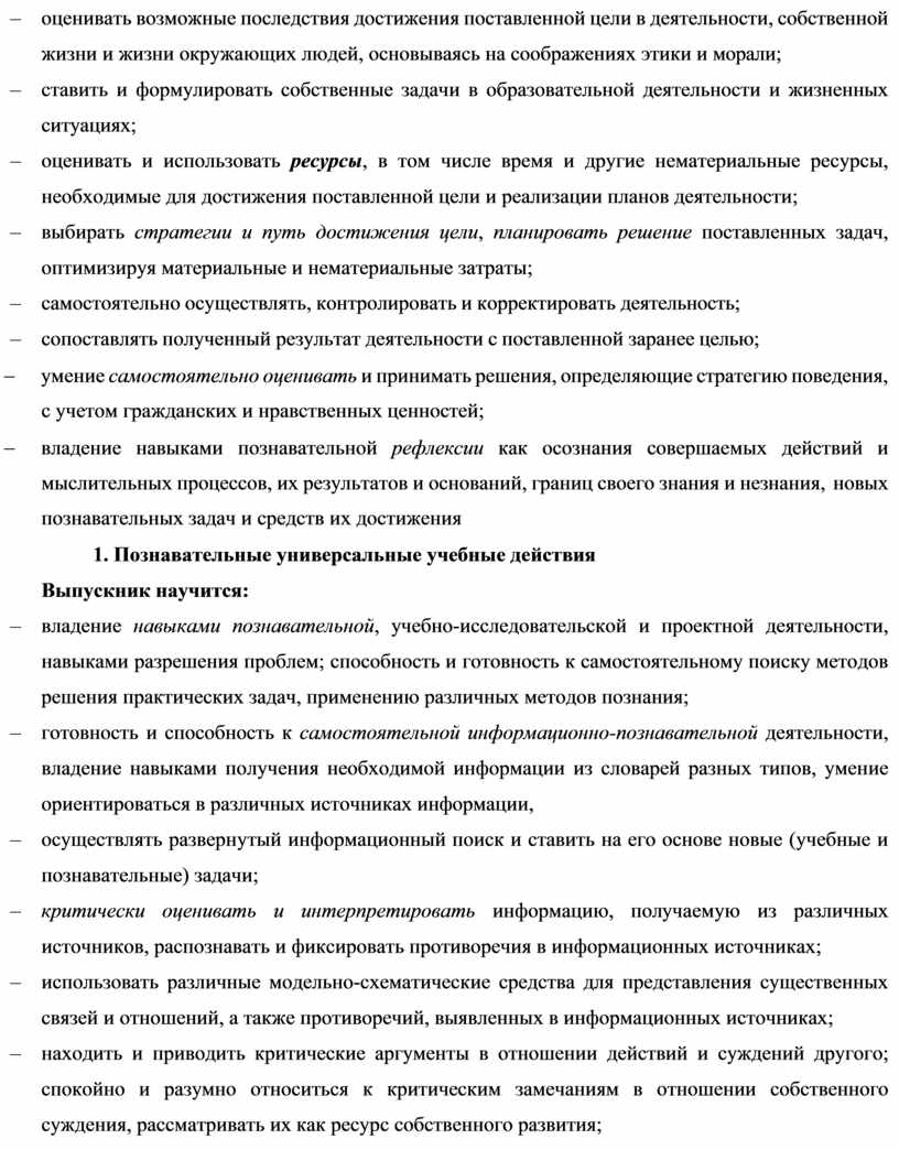 – оценивать и использовать ресурсы, в том числе время и другие нематериальные ресурсы, необходимые для достижения поставленной цели и реализации планов деятельности;