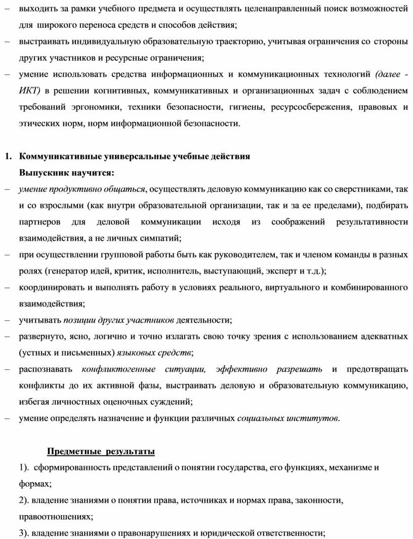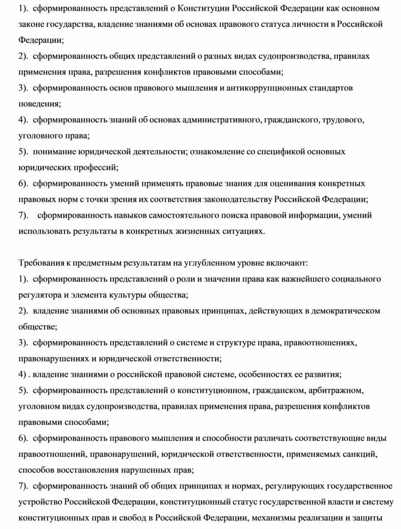 1). сформированность представлений о роли и значении права как важнейшего социального регулятора и элемента культуры общества;