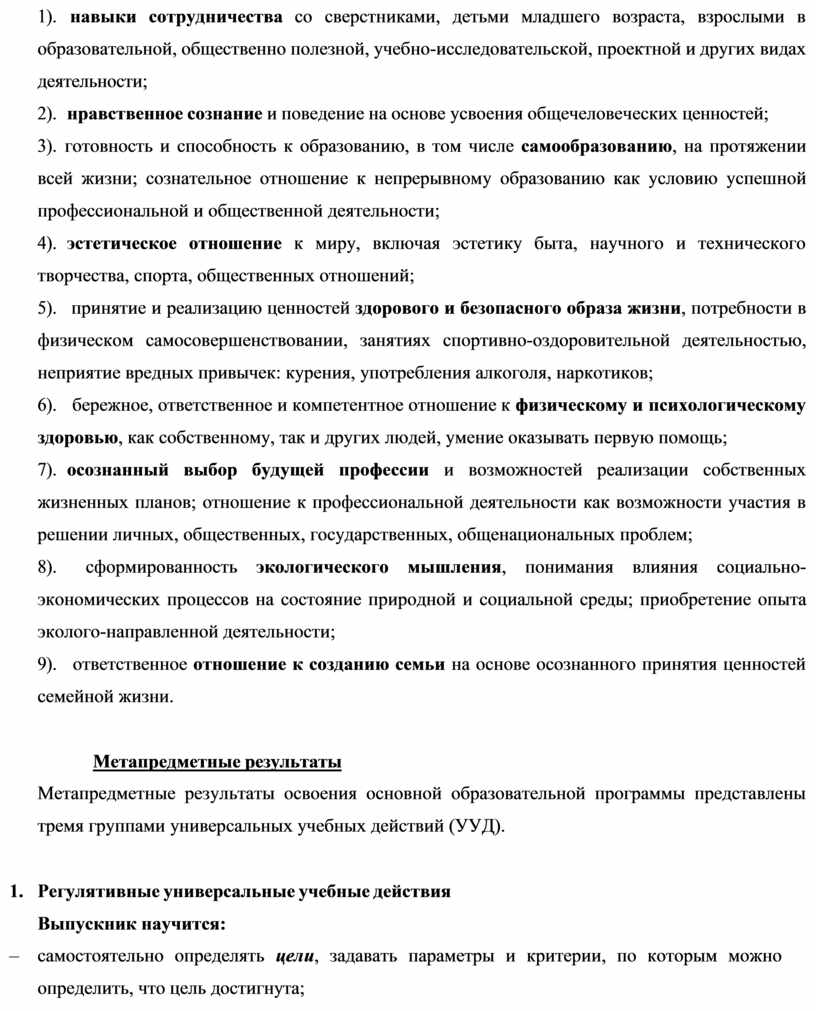 8). нравственное сознание и поведение на основе усвоения общечеловеческих ценностей;