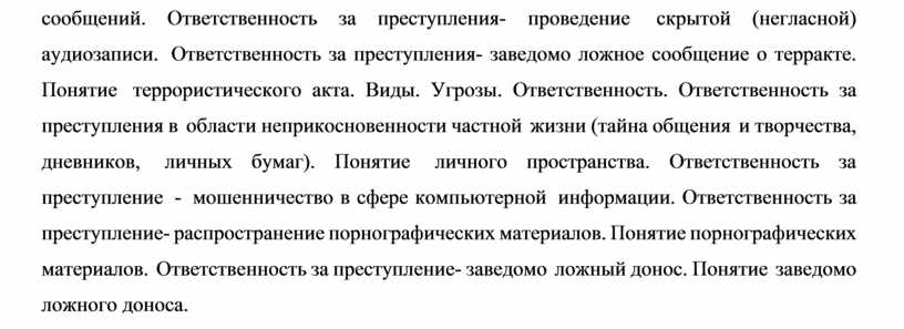Ответственность за преступления в области нарушения тайны переписки, телефонных переговоров и иных сообщений. |