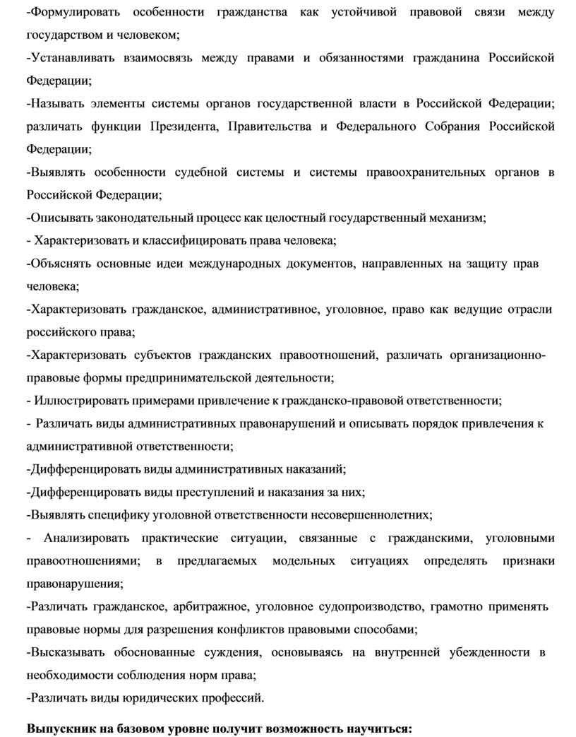 7). сформированность знаний об основах административного, гражданского, трудового, уголовного права;