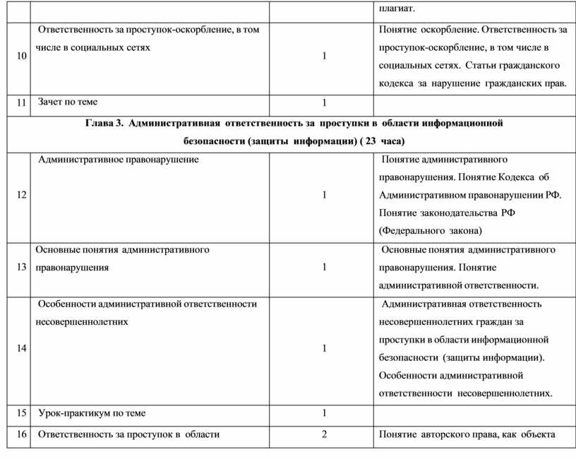 Глава 3. Административная ответственность за проступки в области информационной безопасности (защиты информации) ( 23 часа) |