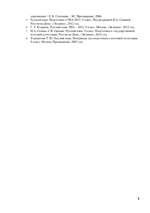 4. Угроватова Т. Ю. Русский язык. Материалы для подготовки к итоговой аттестации.