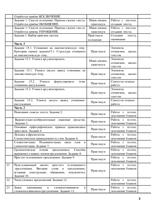 курса русского языка в 9 классе. Работа над 1 и 3 частями экзаменационной работы