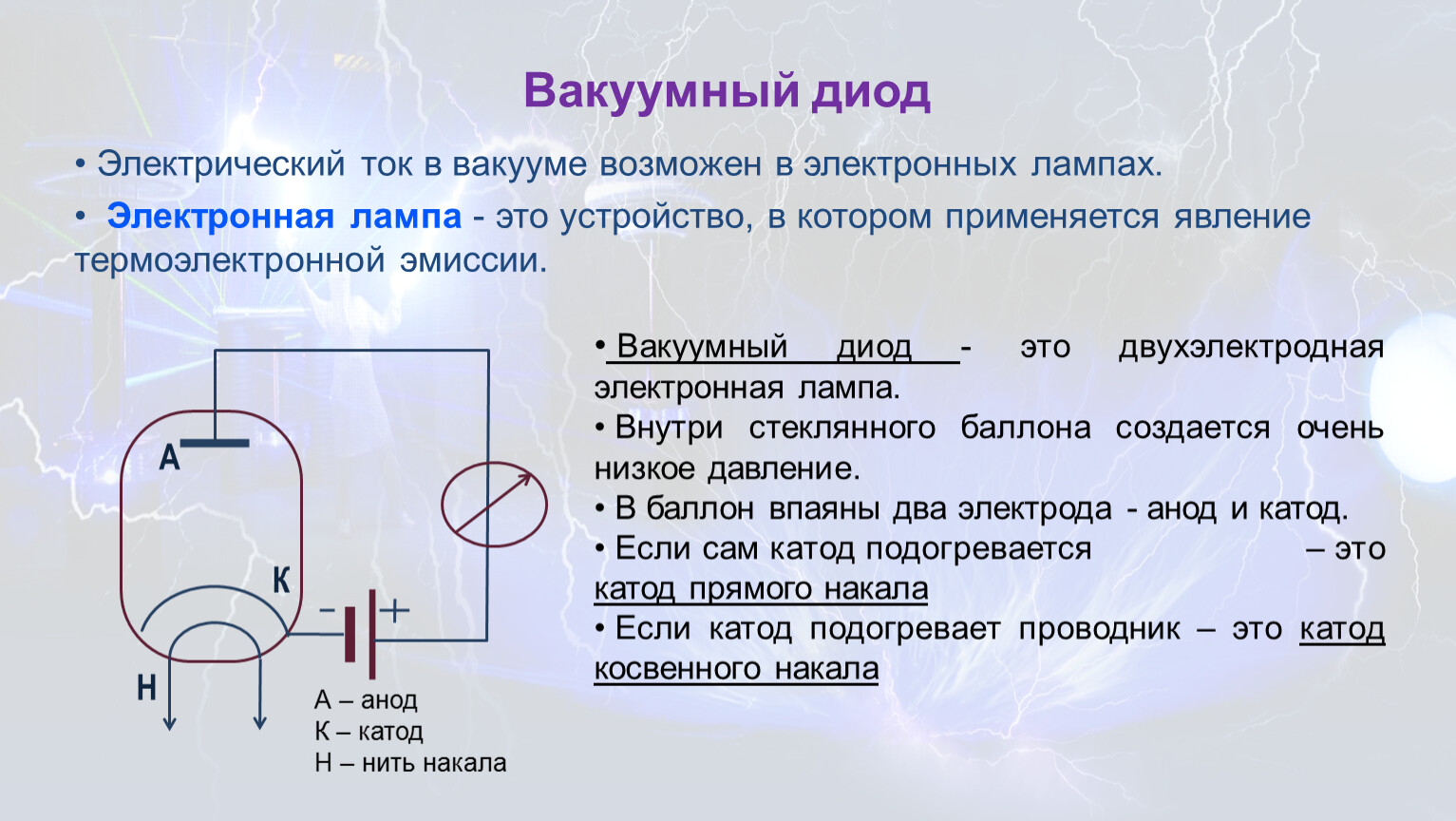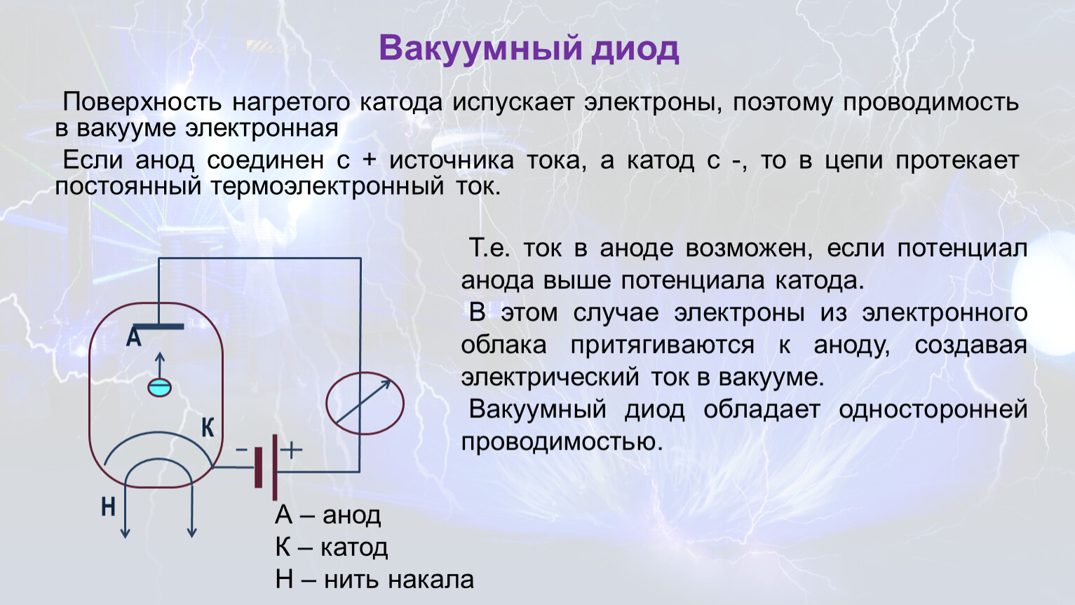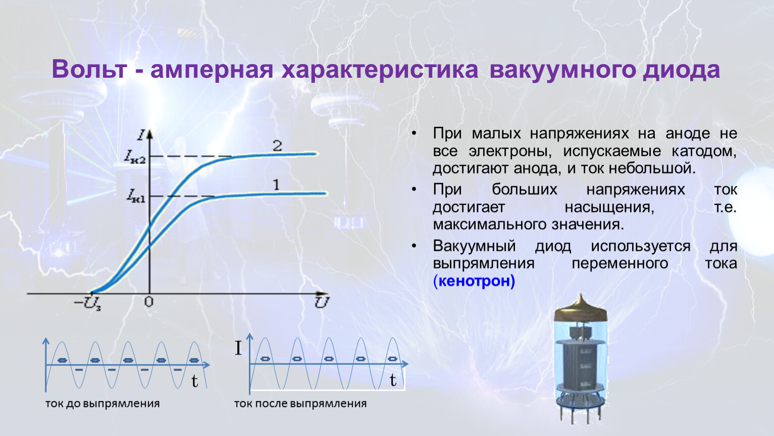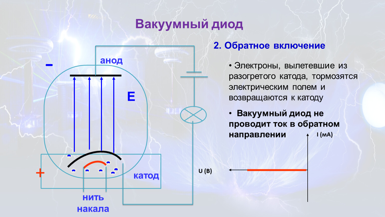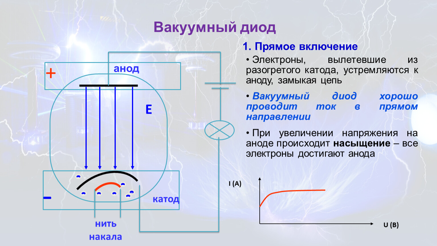 Вакуумный диод хорошо проводит ток в прямом направлении
