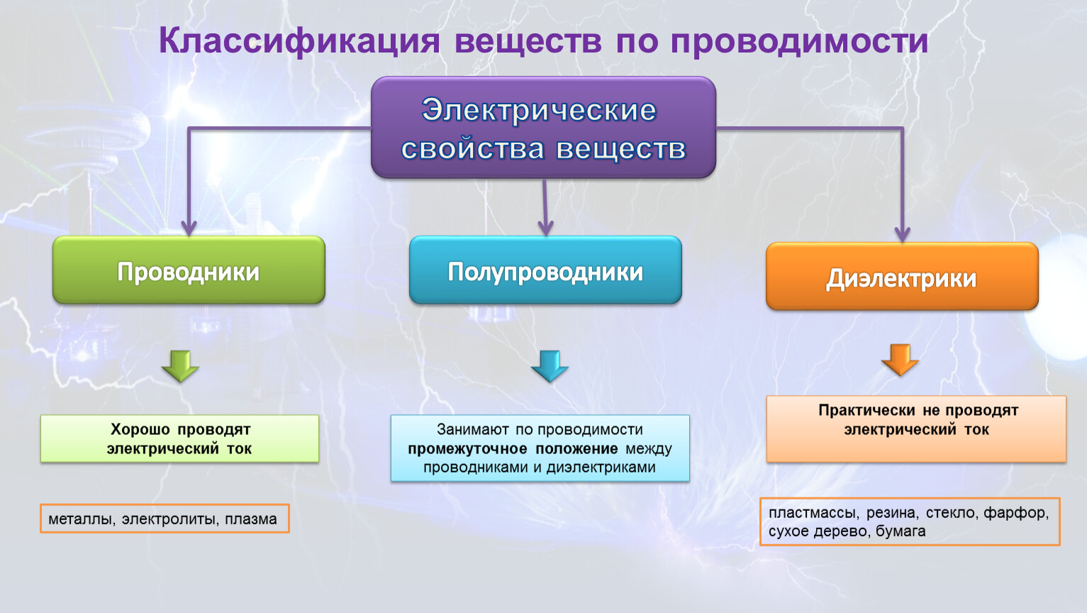 Занимают по проводимости промежуточное положение между проводниками и диэлектриками